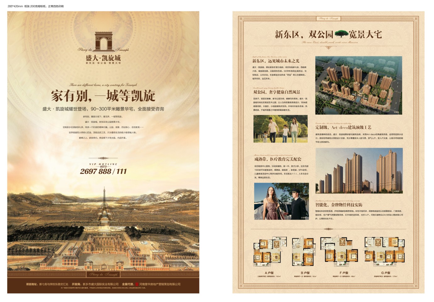 新乡盛大凯旋城,位于新七街与荣校东路交汇处,总建筑面积约27万㎡,集商业、公寓、住宅于一体。项目四面临路,交通便利,出路通畅,与城市交通网络对接性优越。周边休闲、餐饮、娱乐、教育、政务等配套齐全。项目品质**,Art-deco建筑风格,更显豪宅气势;同层排水技术,不干扰下层,噪音小;雾森系统的应用,改善空气质量,美化社区环境;智能化管理和人性化服务,让盛大凯旋城的主人独享尊贵!